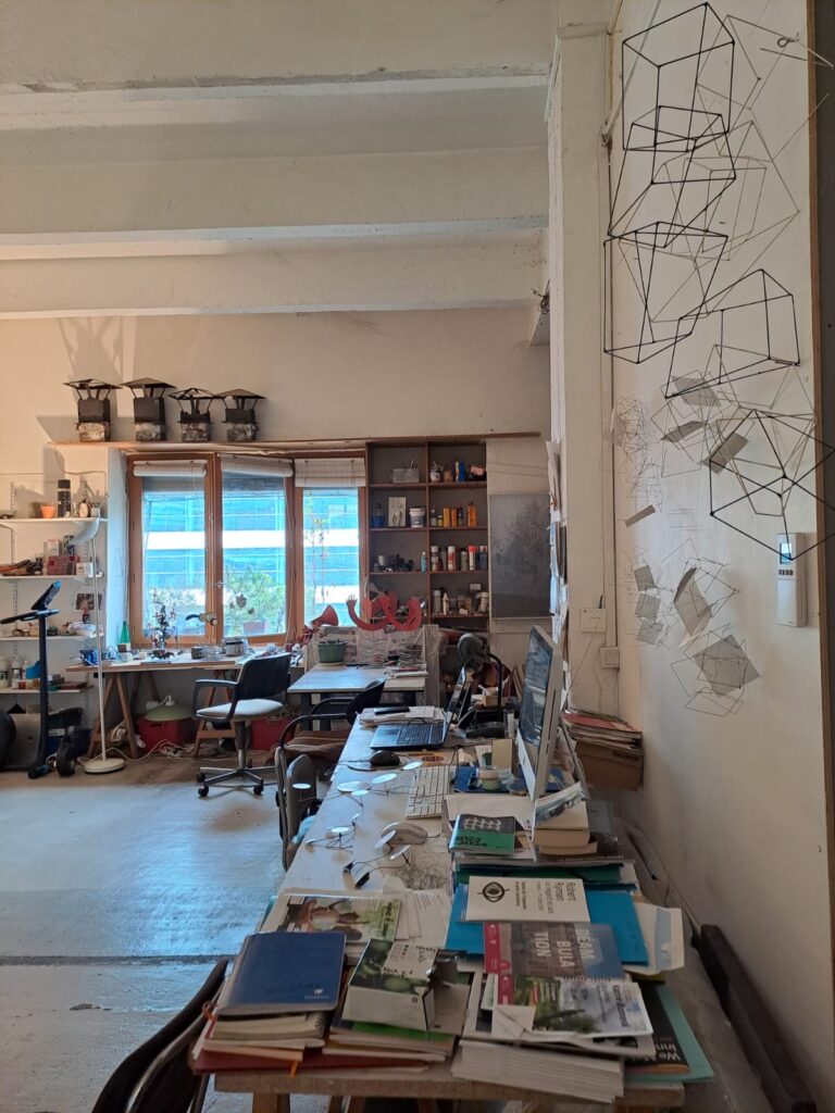 Son héritage tunisien se révèle et s’incarne dans la luminosité de ses volumes de papiers blancs , de ses dessins écrans , dans ses volumes tissés de fil. Sa fascination pour la lumière et la transparence a été nourrie par la luminosité de sa ville natale , la blancheur de son architecture ,par le jeu des ombres portées des éléments décoratifs tels que les balcons , les murs , les jasmins …..